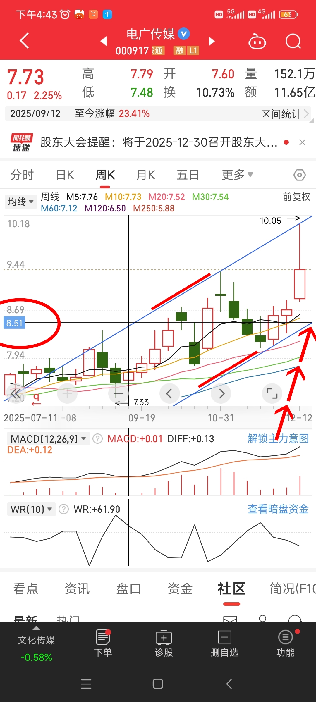 $电广传媒(SZ000917)$ 不破平行线的话,下周理论上最低可到8.51