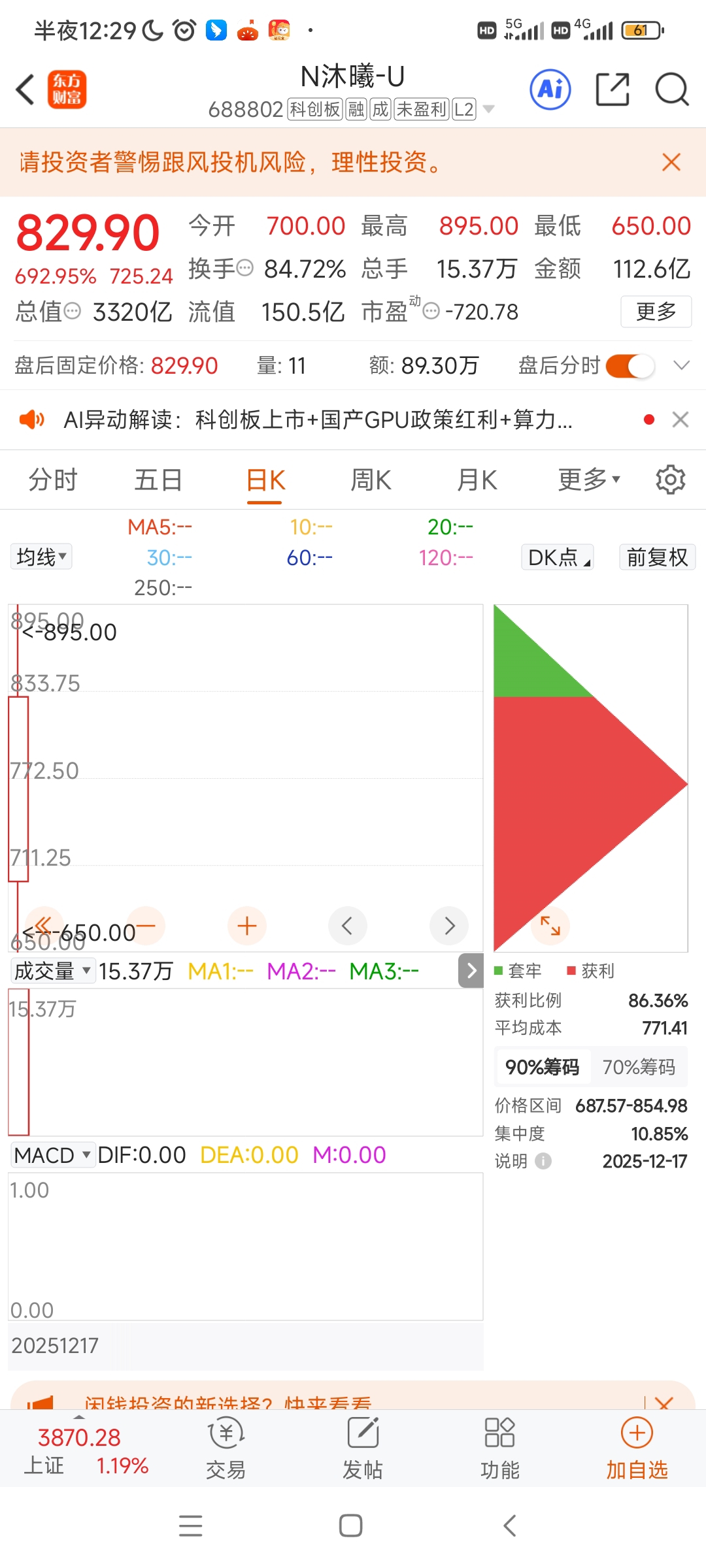 这几天杀跌,沐曦都没人提了,今天上市了都没人讲
