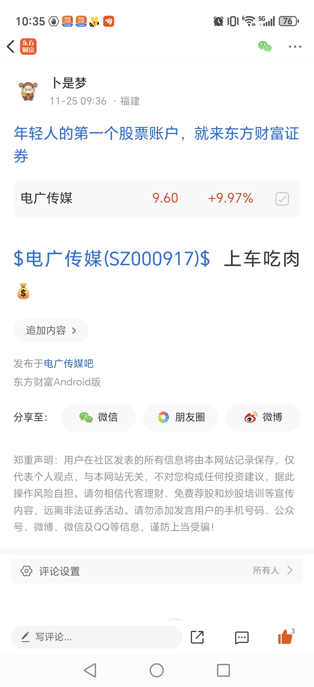 温馨提示: 1.根据《证券法》规定,禁止编造、传播虚假信息或者误导性信息,扰乱证券市场;2.用户在本社区发表的所有资料、言论等仅代表个人观点,与本网站立场无关,不对您构成任何投资建议。用户应基于自己的独立判断,自行决定证券投资并承担相应风险。《东方财富社区管理规定》