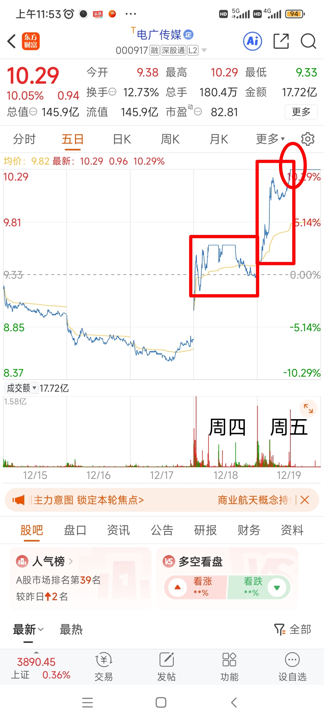 $电广传媒(SZ000917)$ 周五下午直接上板就知道,周五上午太多人跑了,周四跑了想水下接的也极少追高,庄家趁机封上不再开板,后面只需要每拉二三十点震荡洗一下成本低是韭菜,就到天上去了