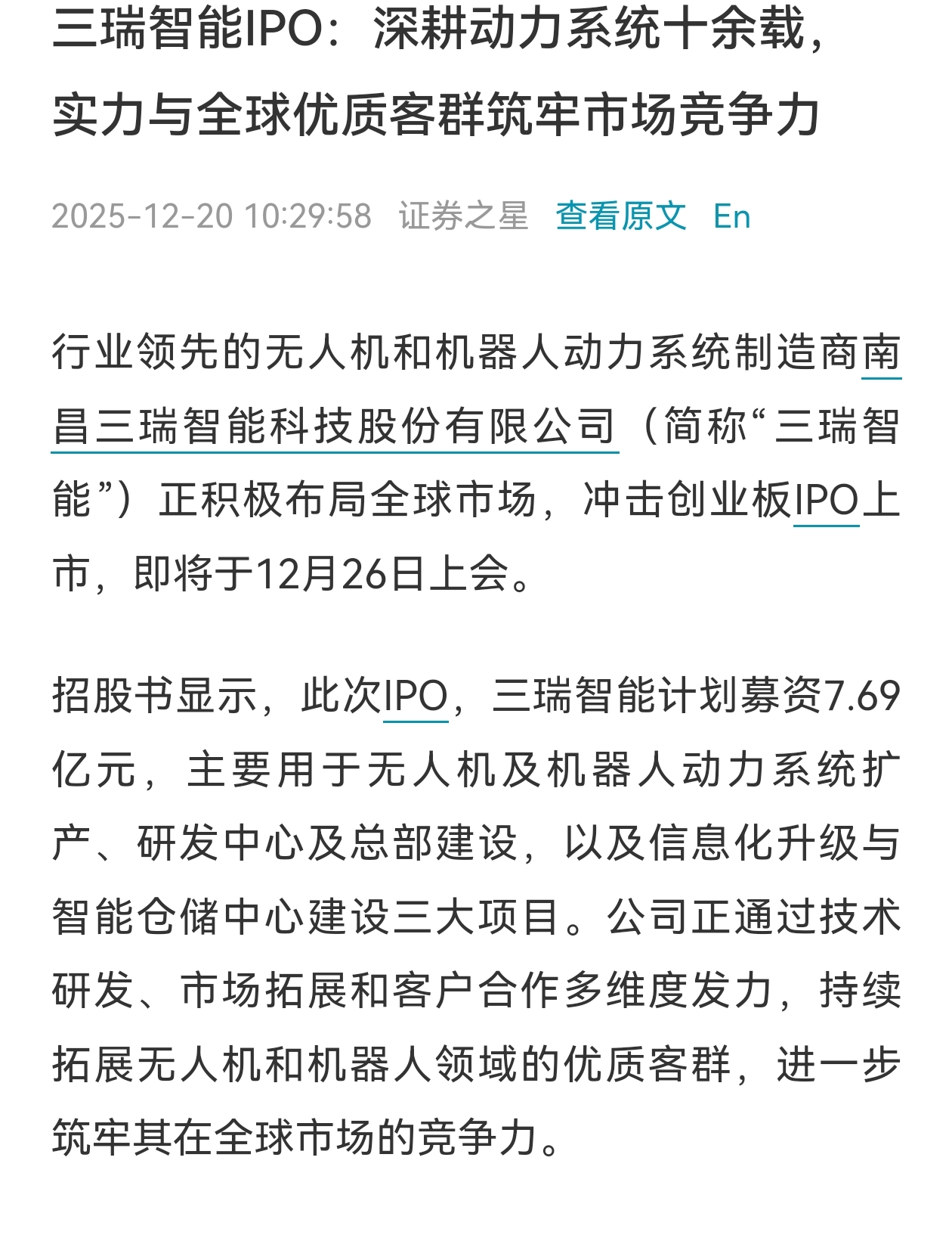 别老盯着智谱,电广里面好东西有的是,无人机老大三瑞智能马上上市,军工+低空经济绝