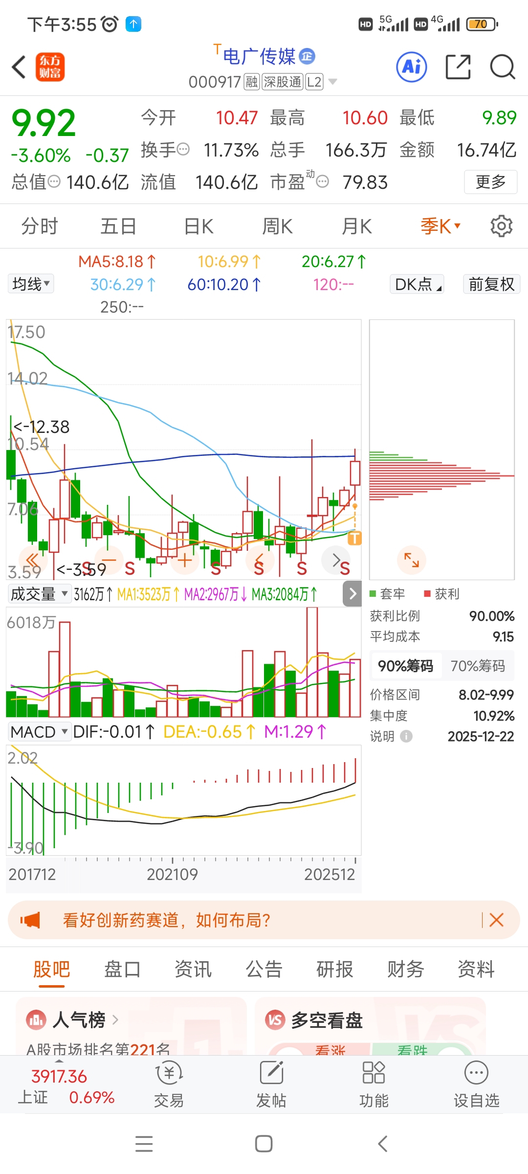 $电广传媒(SZ000917)$ 60季线果然不是一下子就能突过去的,虽然这是做给技术派看的