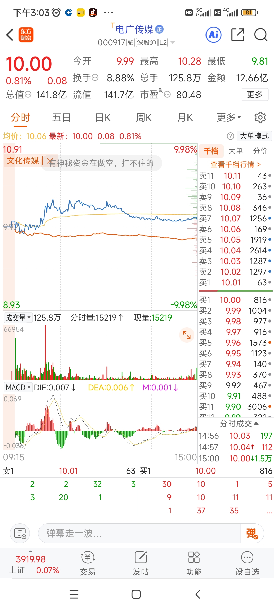 $电广传媒(SZ000917)$ 虽然早就不跟传媒了,但是传媒暴跌,对它还是有强力的拉拽作用的