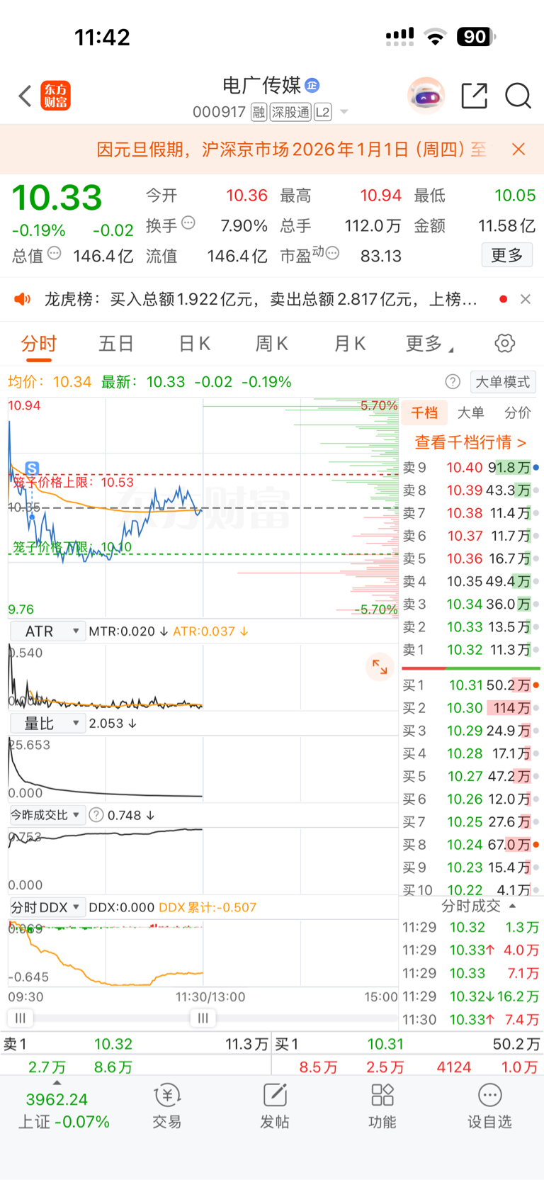 $电广传媒(SZ000917)$ 我止赢出了,下午可以涨停了