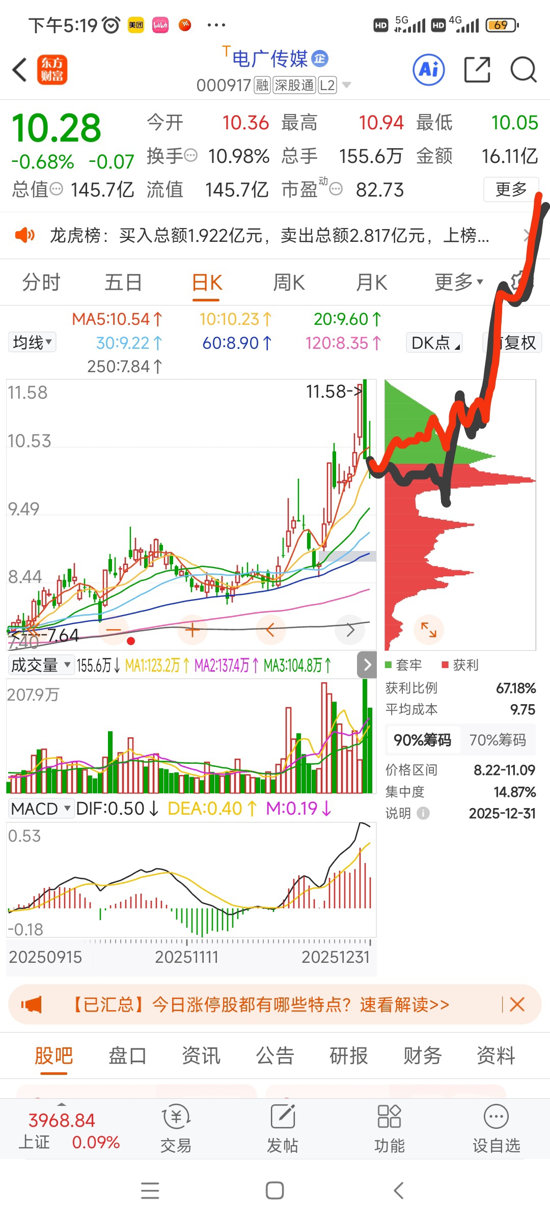 $电广传媒(SZ000917)$ 不过也可能是红线这样喔,缓涨震荡甩浮筹