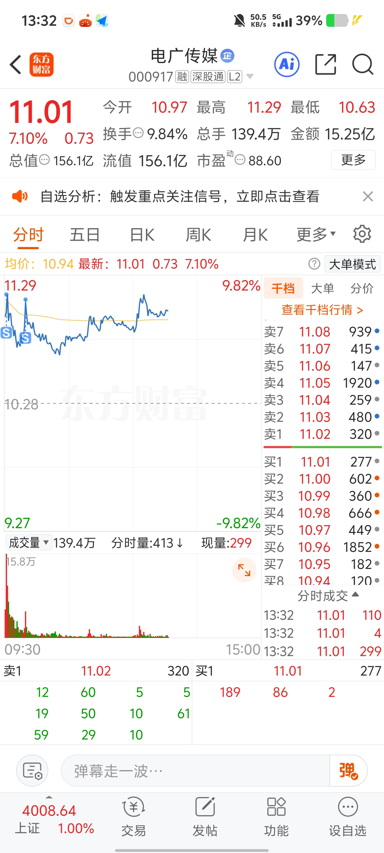 $电广传媒(SZ000917)$ 就不去猜他为什么涨了 今天高点减仓 后市依旧看好