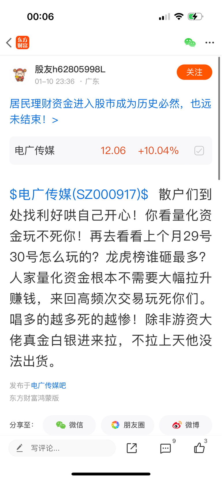 温馨提示: 1.根据《证券法》规定,禁止编造、传播虚假信息或者误导性信息,扰乱证券市场;2.用户在本社区发表的所有资料、言论等仅代表个人观点,与本网站立场无关,不对您构成任何投资建议。用户应基于自己的独立判断,自行决定证券投资并承担相应风险。《东方财富社区管理规定》