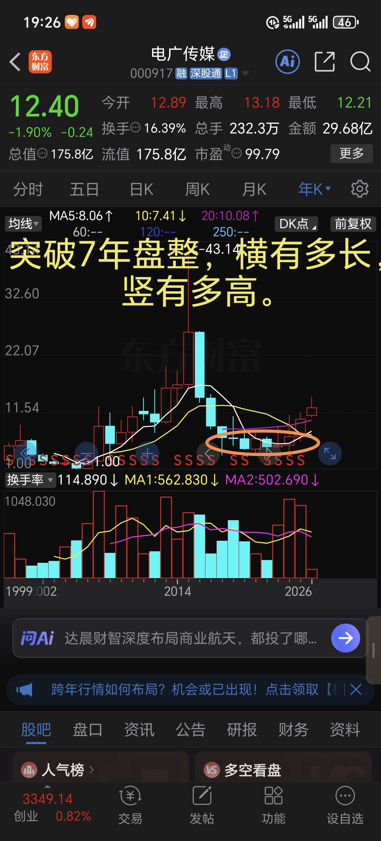 $电广传媒(SZ000917)$ 横有多长,竖有多高。