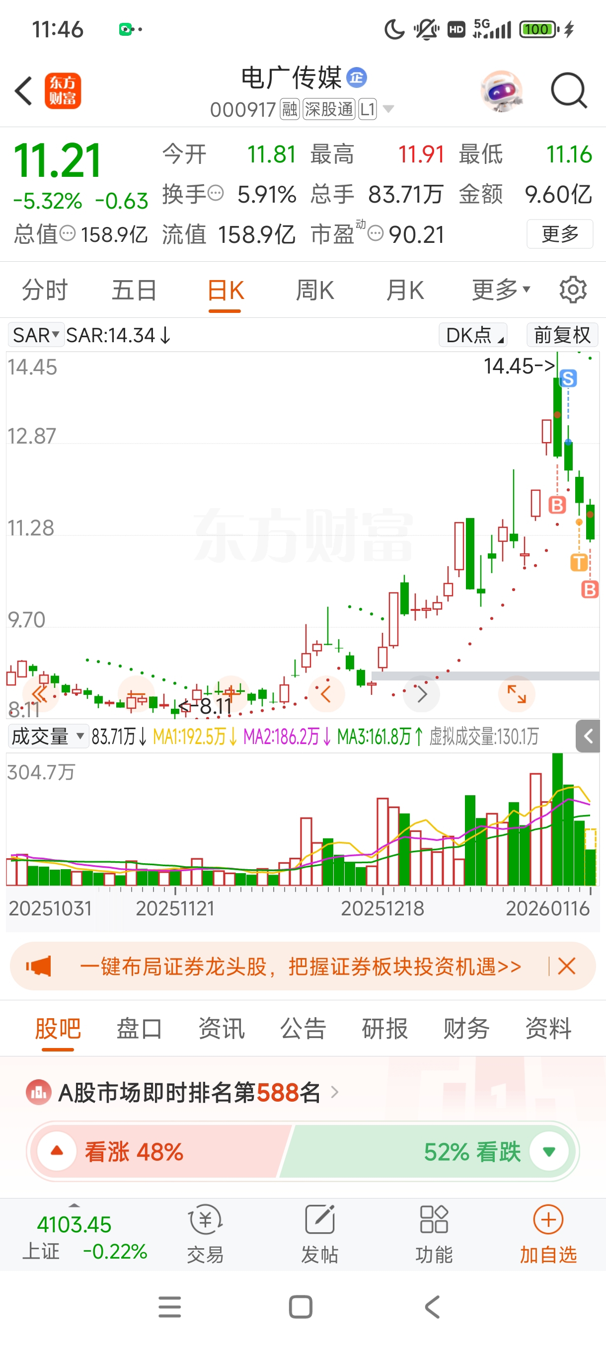 温馨提示: 1.根据《证券法》规定,禁止编造、传播虚假信息或者误导性信息,扰乱证券市场;2.用户在本社区发表的所有资料、言论等仅代表个人观点,与本网站立场无关,不对您构成任何投资建议。用户应基于自己的独立判断,自行决定证券投资并承担相应风险。《东方财富社区管理规定》