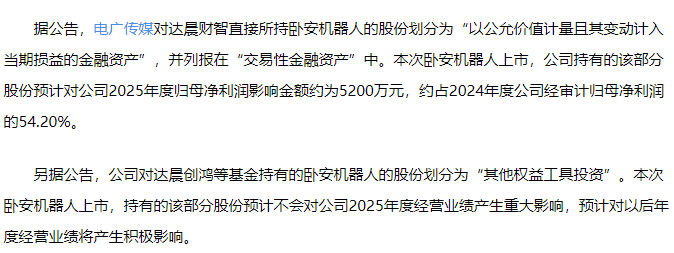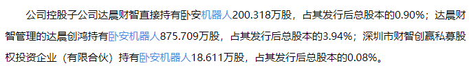 卧安机器人200W股净利润2.32亿。