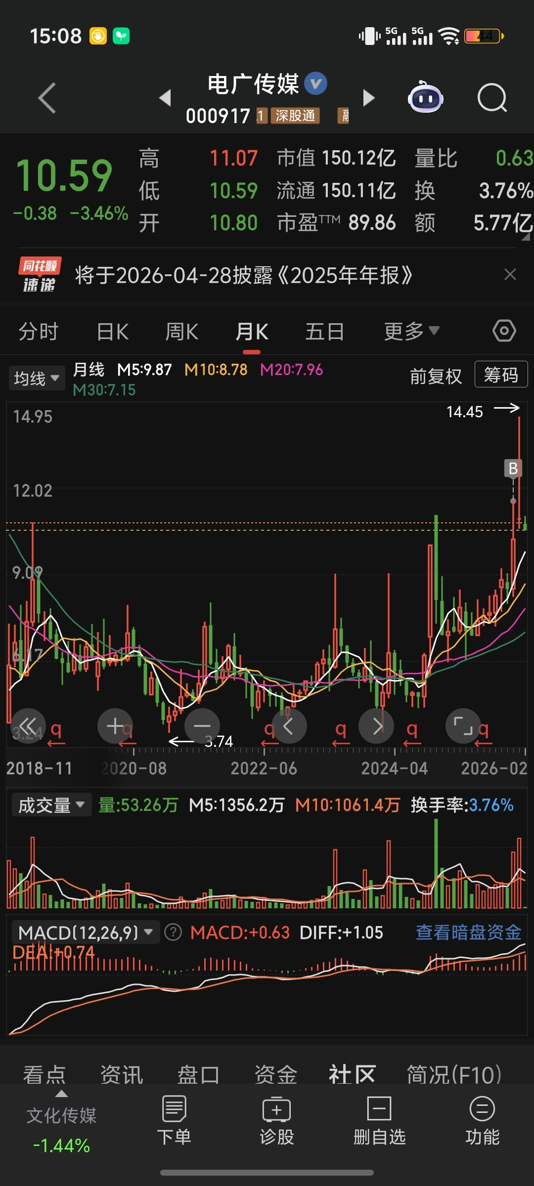 $电广传媒(SZ000917)$ 近10年来,每根月线长上影之后,都得再跌半年以上,从无例外,看图