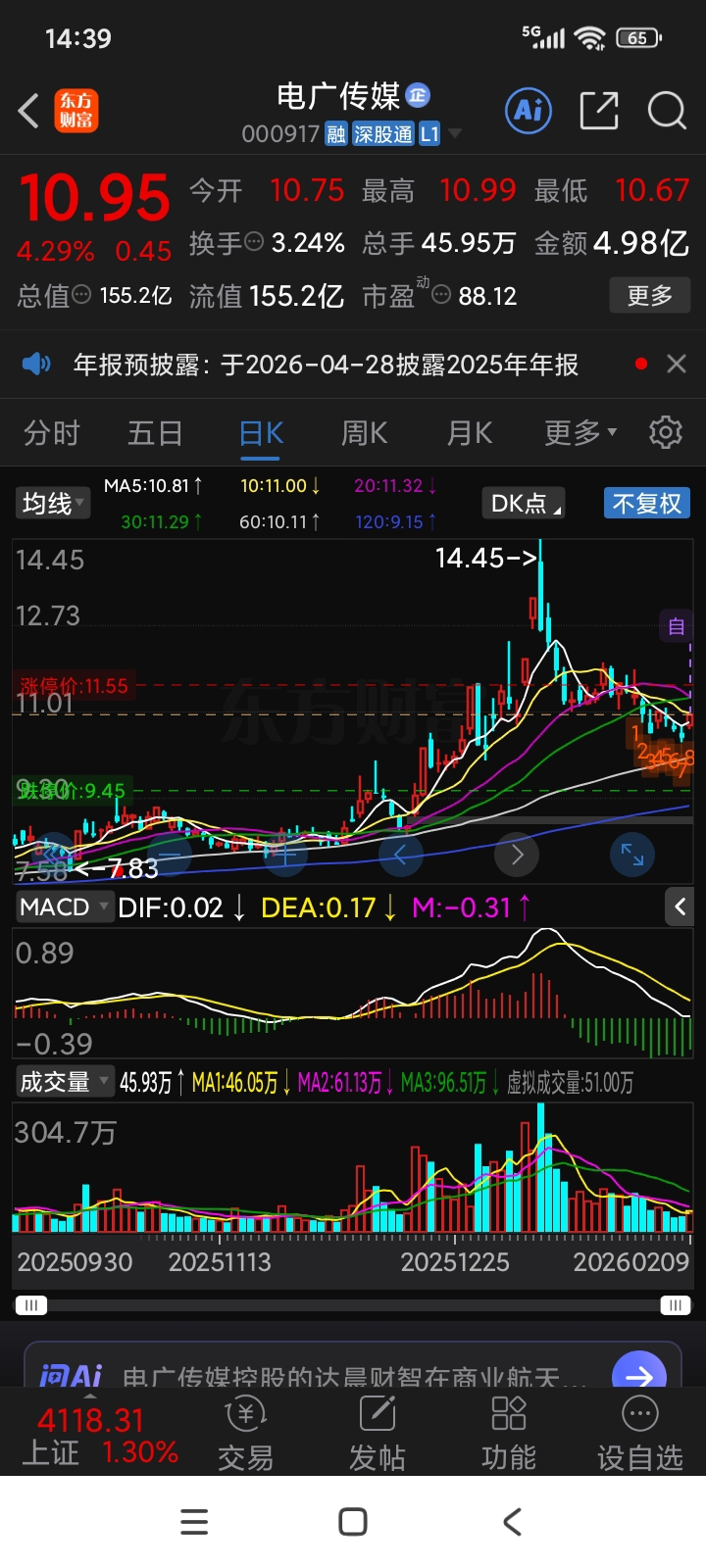 $电广传媒(SZ000917)$ 这票A杀下来,总应该有一个修复吧?