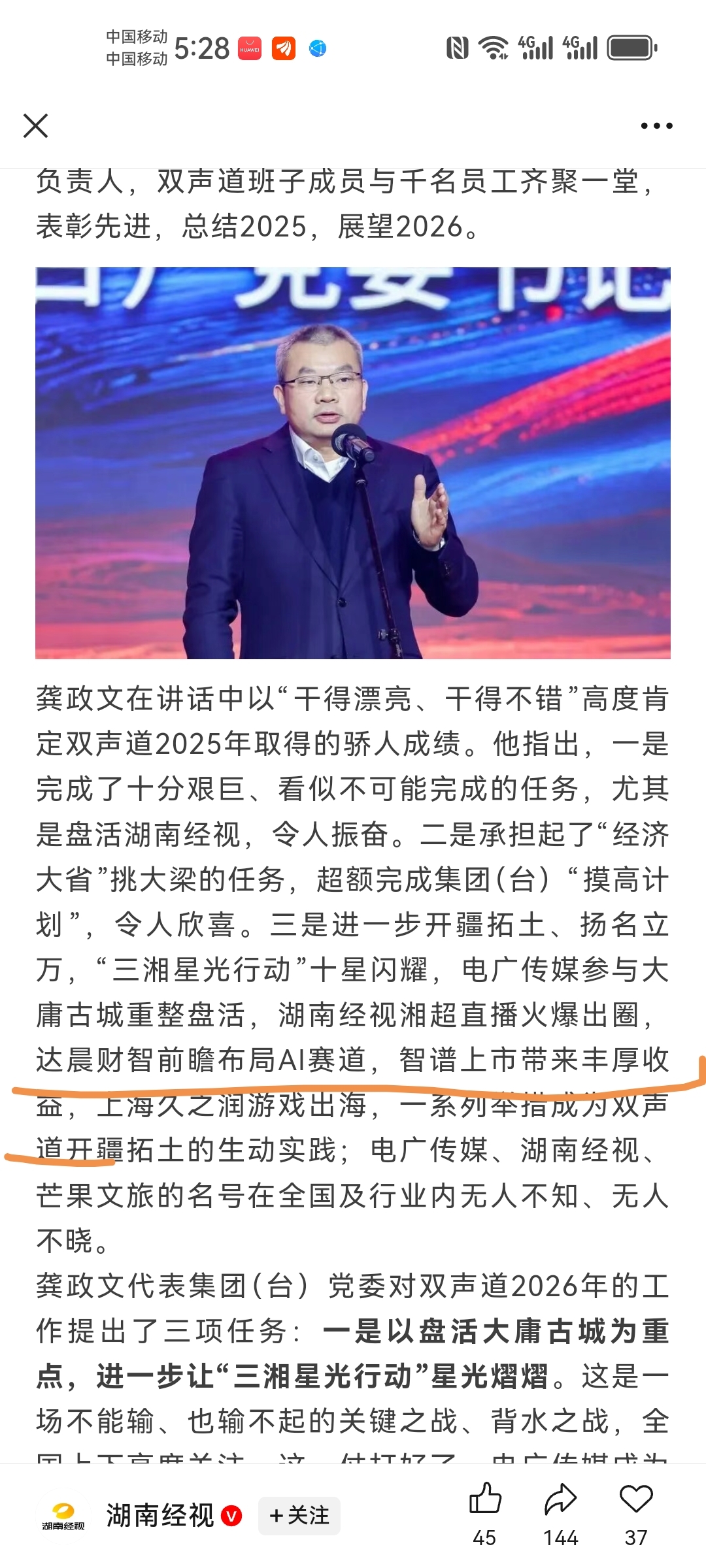 $电广传媒(SZ000917)$ 有些人就会质疑参股质谱,看看台长怎说的