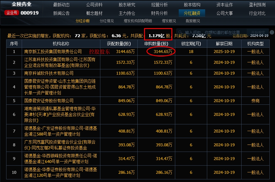 我就问大家一个问题!金陵药业2024年10月30日解禁以来,除去控股股东的限售股