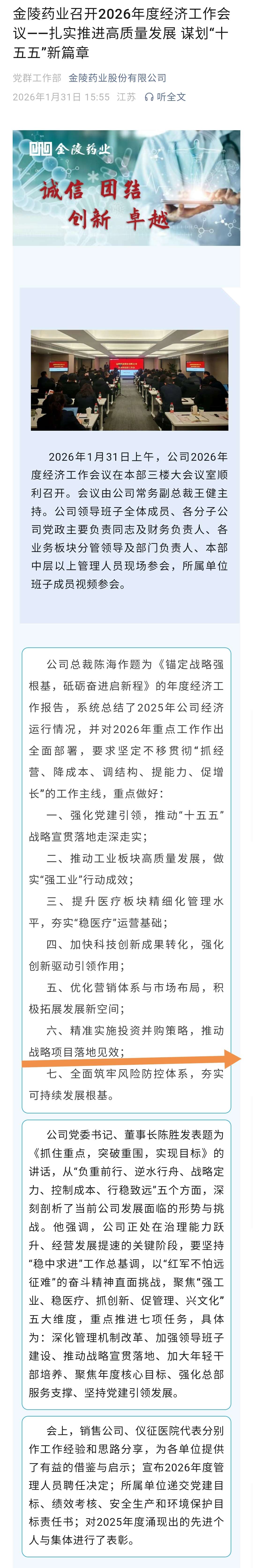 金陵药业召开2026年度经济工作会议——扎实推进高质量发展谋划“十五五”新篇章!