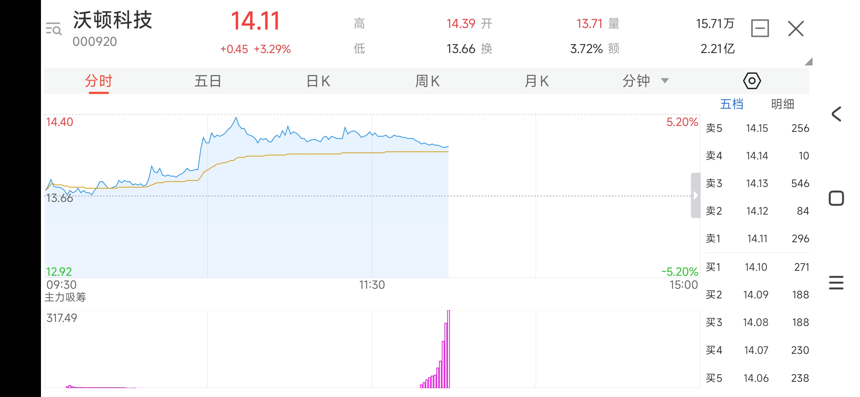 $沃顿科技(SZ000920)$ 信号出现了,动手。
