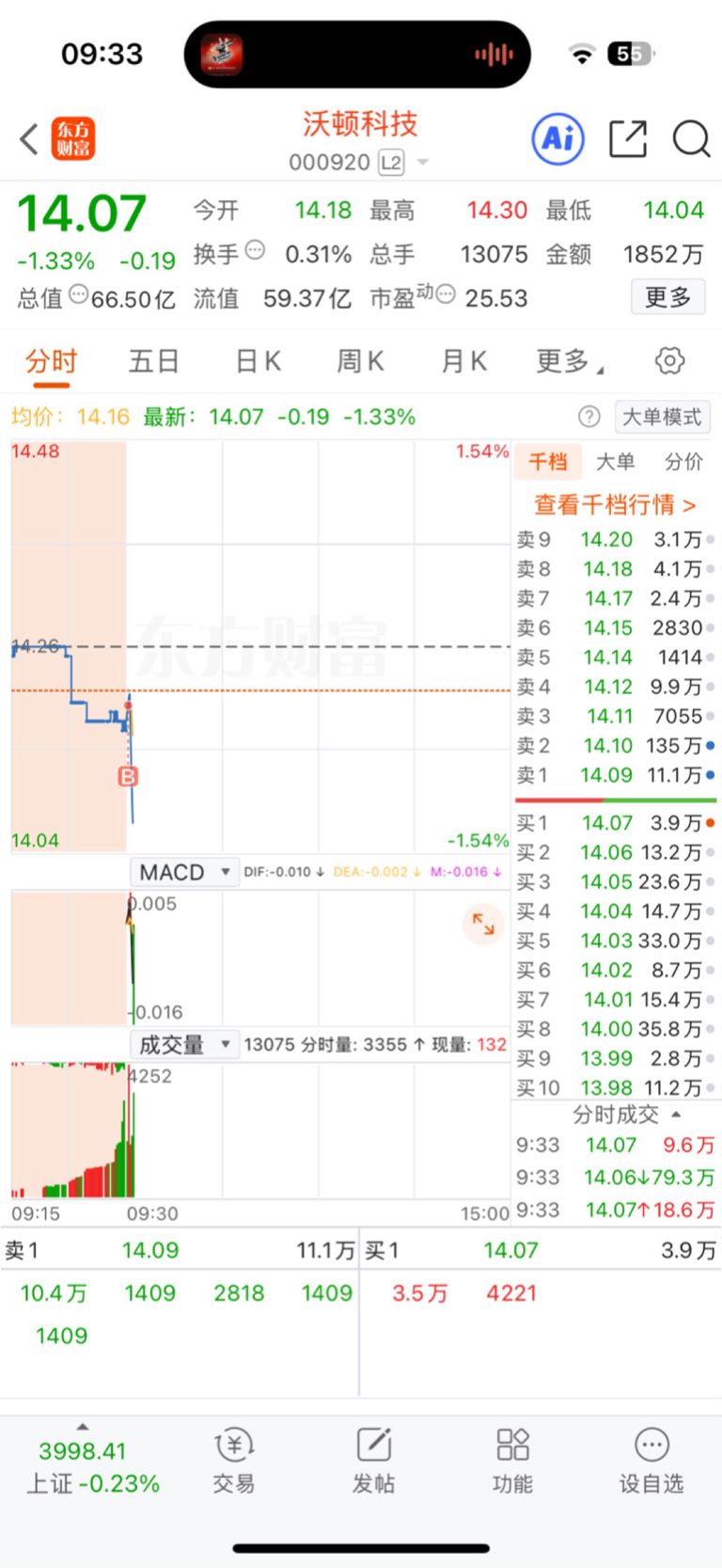 $沃顿科技(SZ000920)$ 对不起,被我买崩了