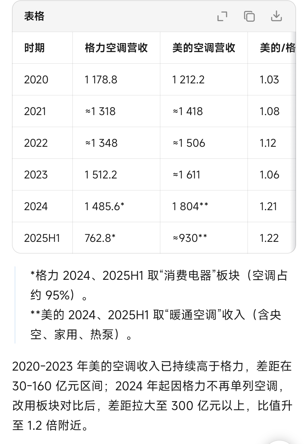 单单空调业务:格力+海信(海信+科龙+海信日立)约等于美的。