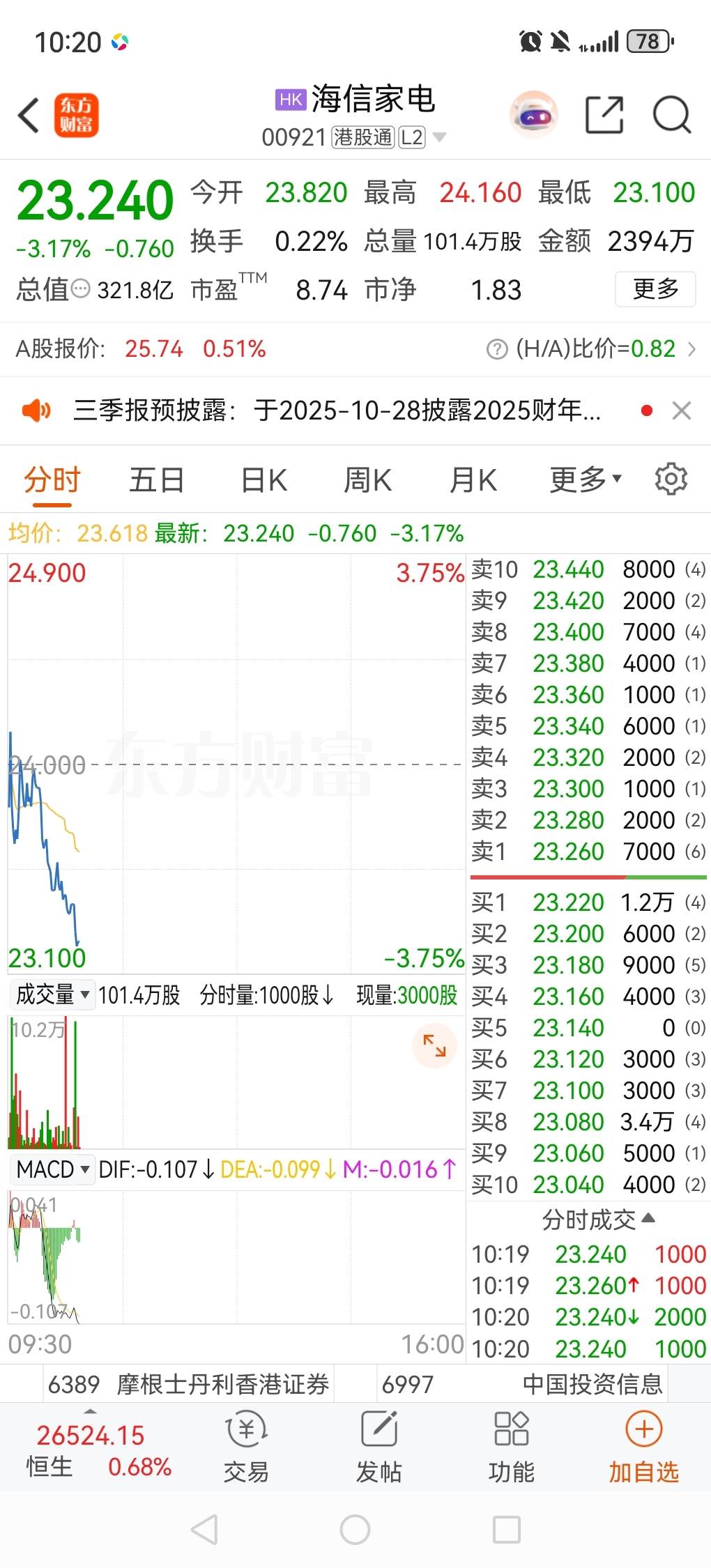 $海信家电(SZ000921)$ 希望不要被港股带下来