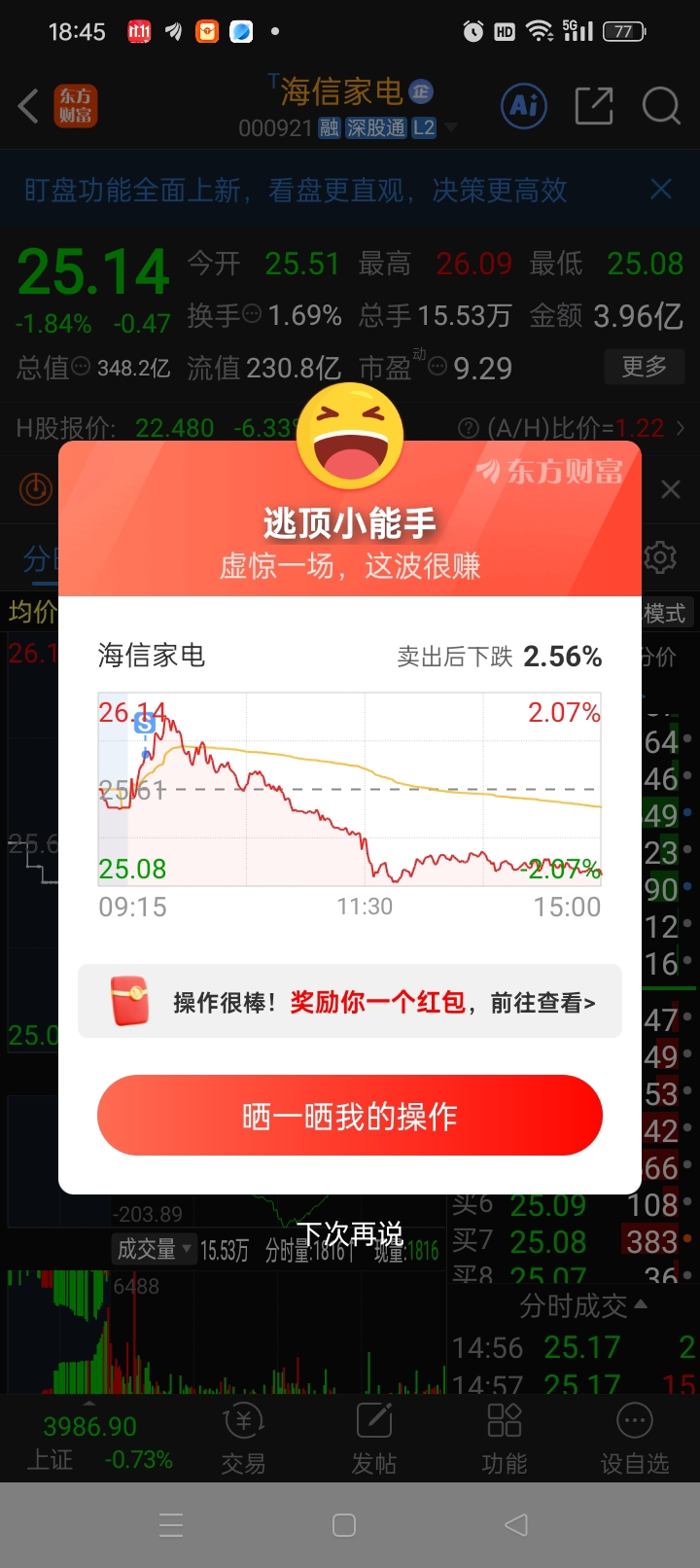 $海信家电(SZ000921)$ 幸好早盘我卖出了,看来还有得跌。