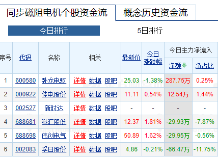 同步磁阻电机板块,卧龙电驱和佳电股份主力资金流入,但卧龙市盈率太高,佳电股份低于