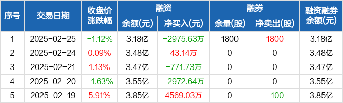 佳电股份:融资净偿还2975.63万元,融资余额3.18亿元(02-25)