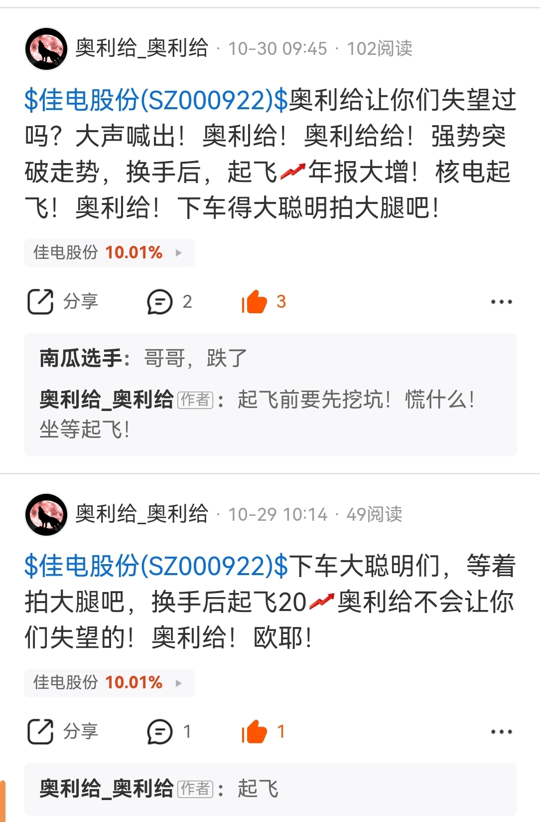 $佳电股份(SZ000922)$ 奥利给上周有没有说过,觉得自己聪敏得大聪明们,卖出必拍大腿!奥利给让你们失望过吗?大声喊出来!跟着奥利给吃肉就完了!奥利给!