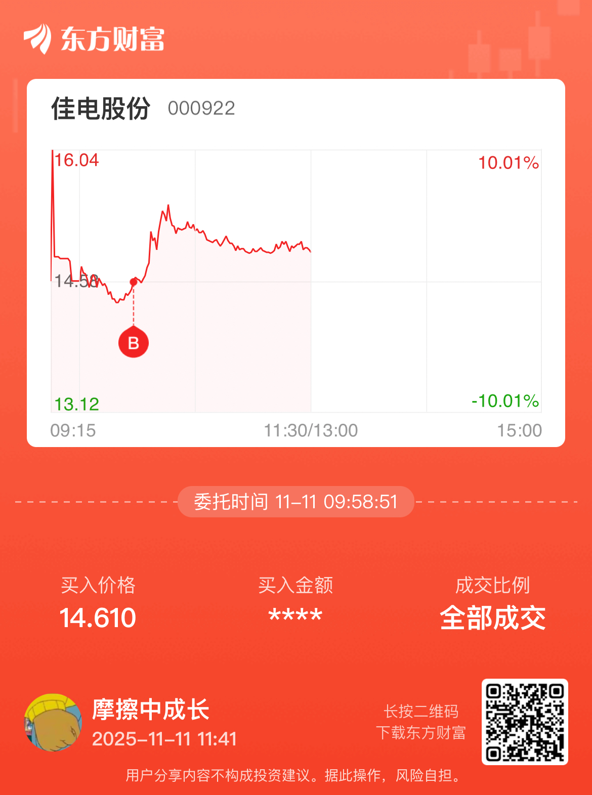 $佳电股份(SZ000922)$ 再拿一下,新高回落