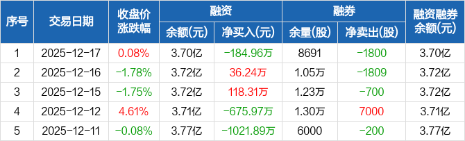 佳电股份:融资净偿还184.96万元,融资余额3.7亿元(12-17)