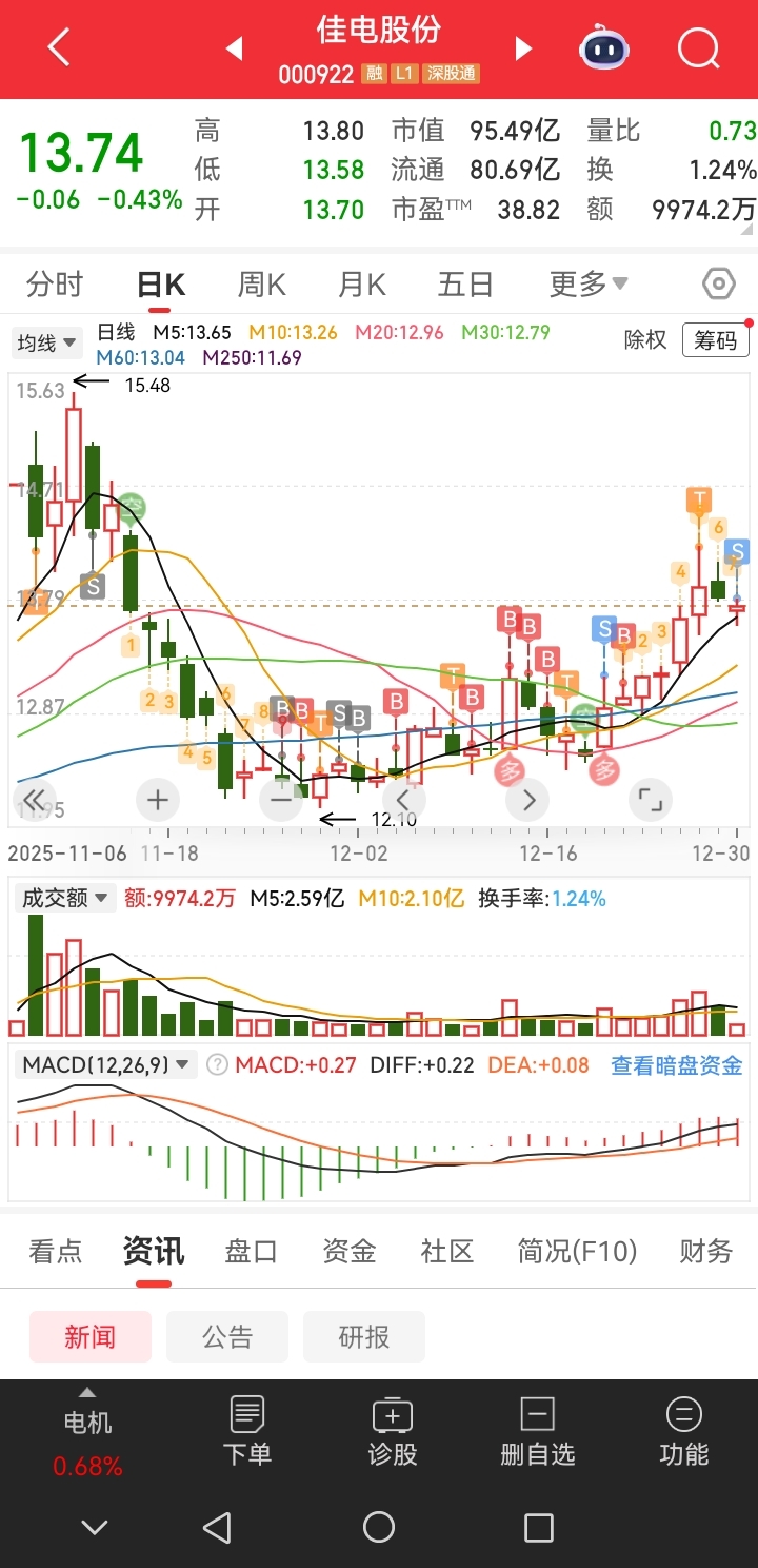 $佳电股份(SZ000922)$ 奥利给提示:介于目前周边局势紧张,特别是台海局势,不可控因素较多,元旦假期临近!保守的可以减仓或清仓,年后视情况择机在战!激进的,愿意承担高风险高收益的可以拼一下!风险和利润成正比!赢了别得意,亏了别骂街!奥利给本人目前半仓持股过节,半仓买入逆回购!进可攻退可守!记住永远不要打光子弹!2026年在战!加油!奥利给!