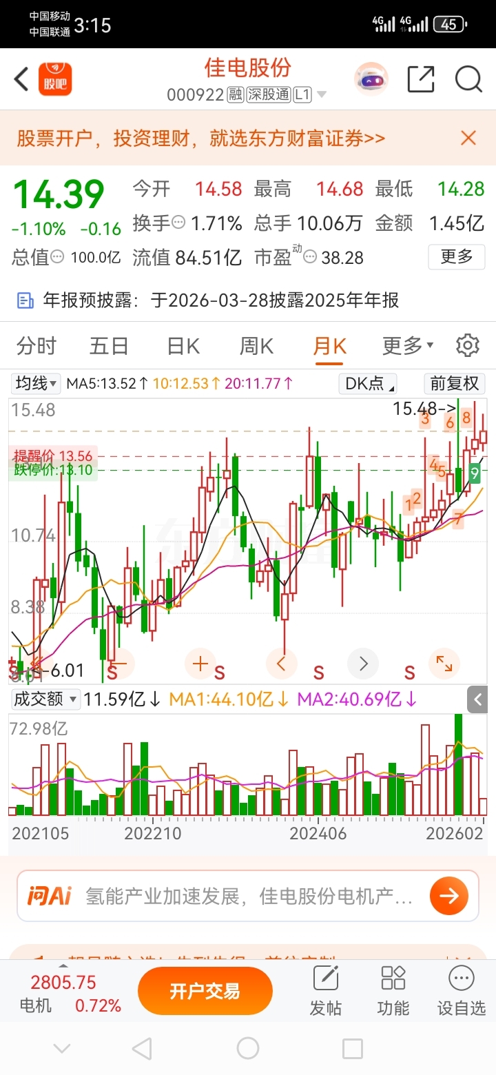 $佳电股份(SZ000922)$ 说是底部得是脑子不好还是啥眼睛不好?看长期月线,,在看日线,还没惊出一声冷汗?还不逃顶?顶部出货ing!!!