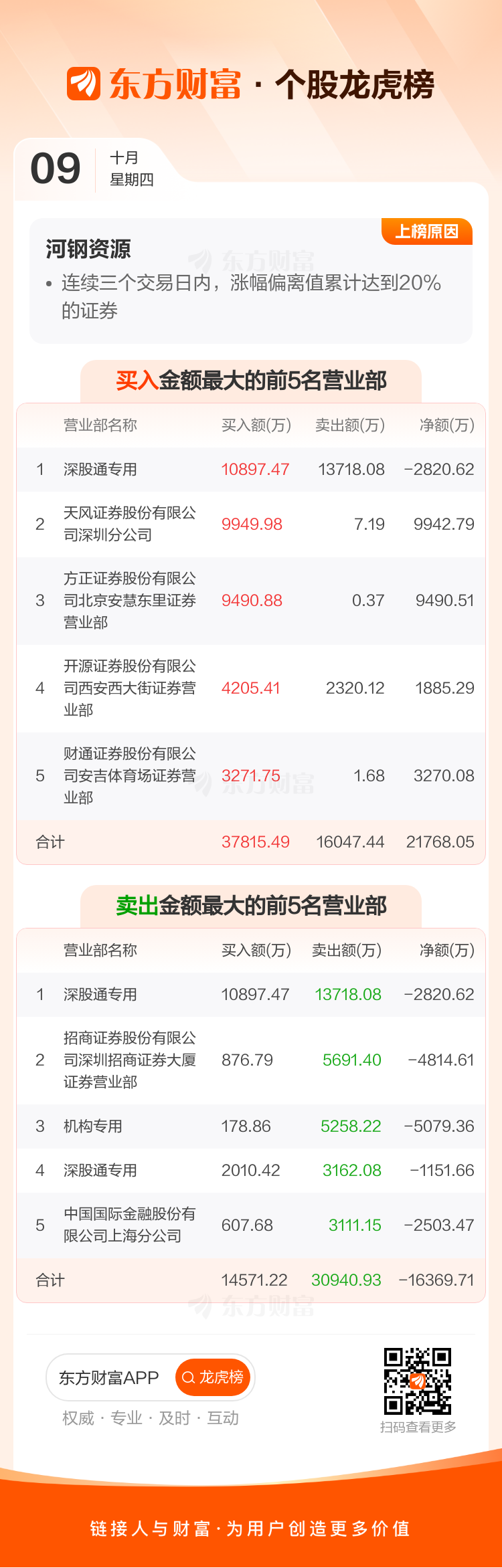 河钢资源(000923)龙虎榜数据(10-09)
