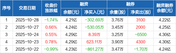 河钢资源:融资净偿还302.69万元,融资余额4.21亿元(10-28)