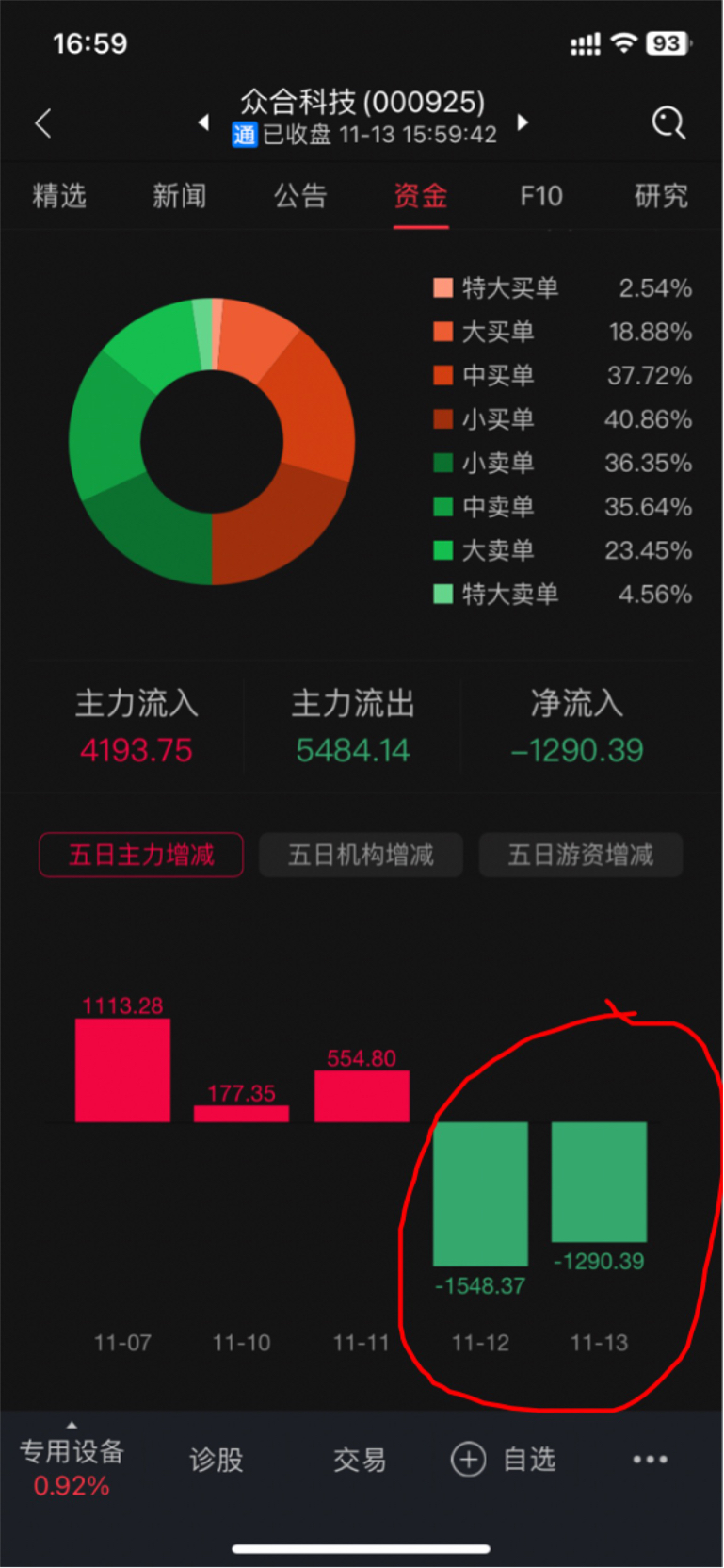 $众合科技(SZ000925)$ 来,给你们看下外面看不到的,近2日主力资金连续流出2800万,老庄又开始做波段了,8.4元到7.4元做高抛低吸。