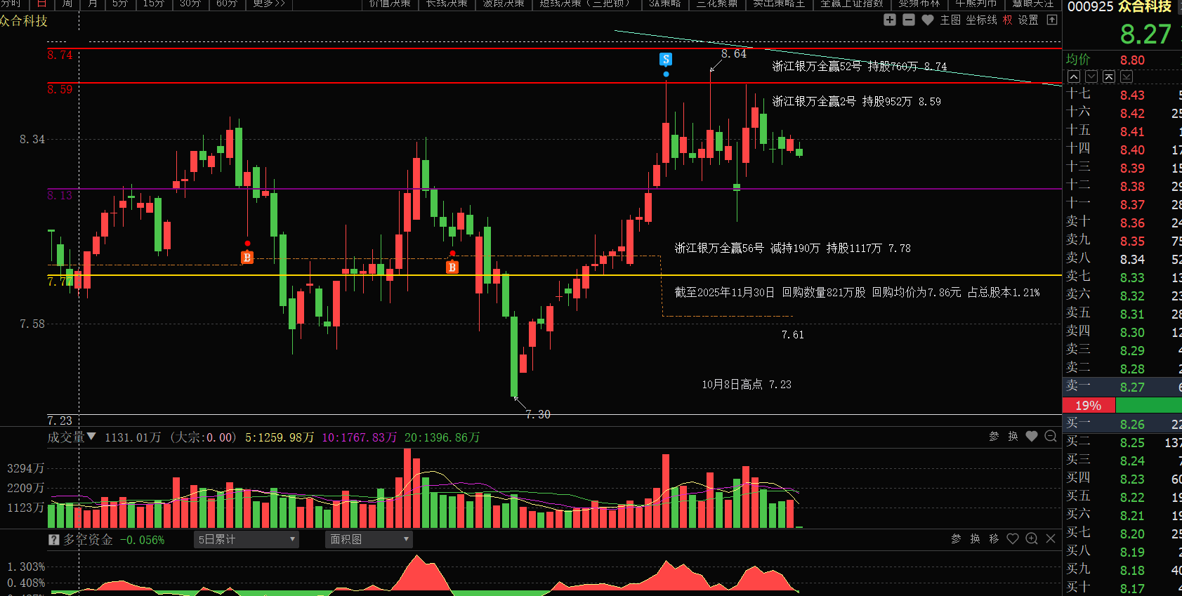 在浙江银万持仓成本附近 8.73 8.59 会出现减仓单