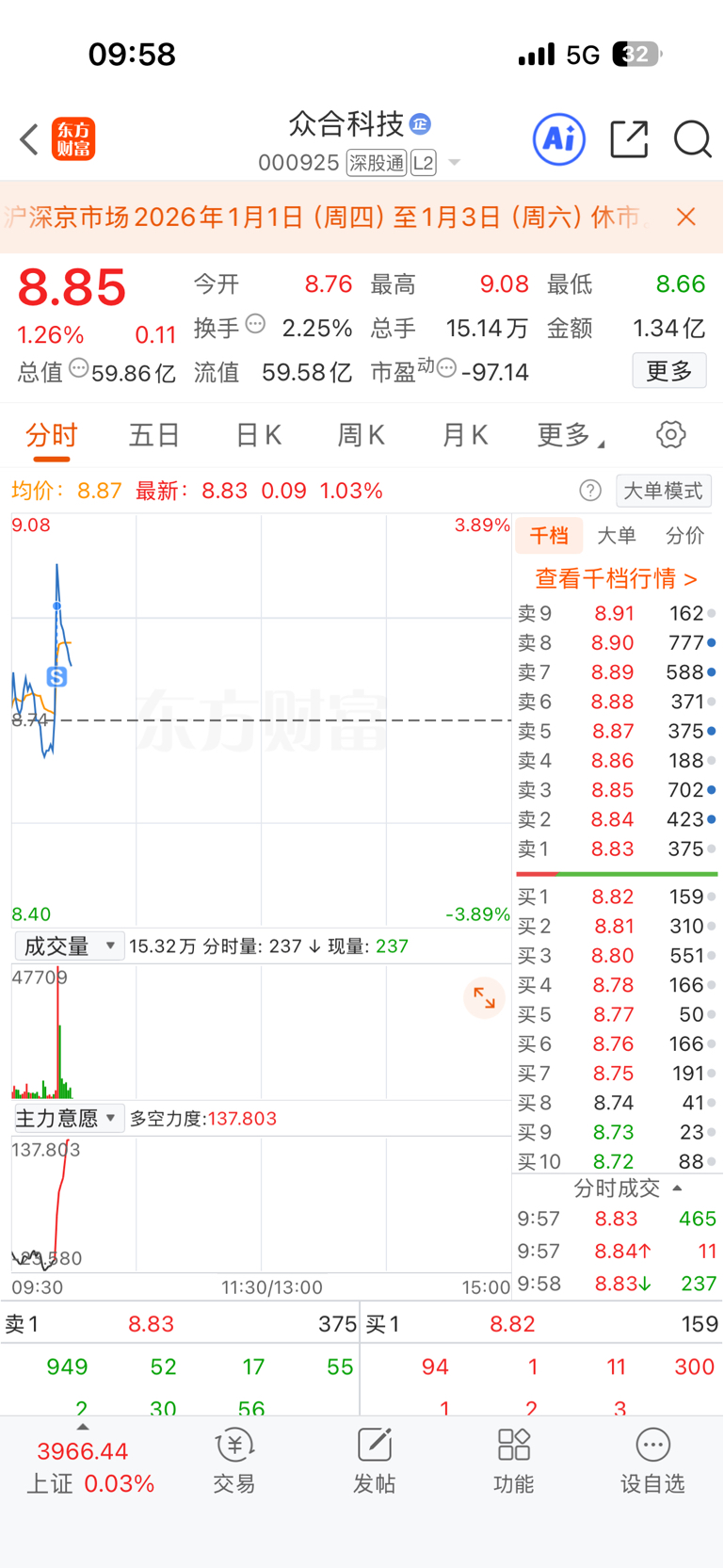 $众合科技(SZ000925)$ 昨天尾盘买的卖了,打卡下班