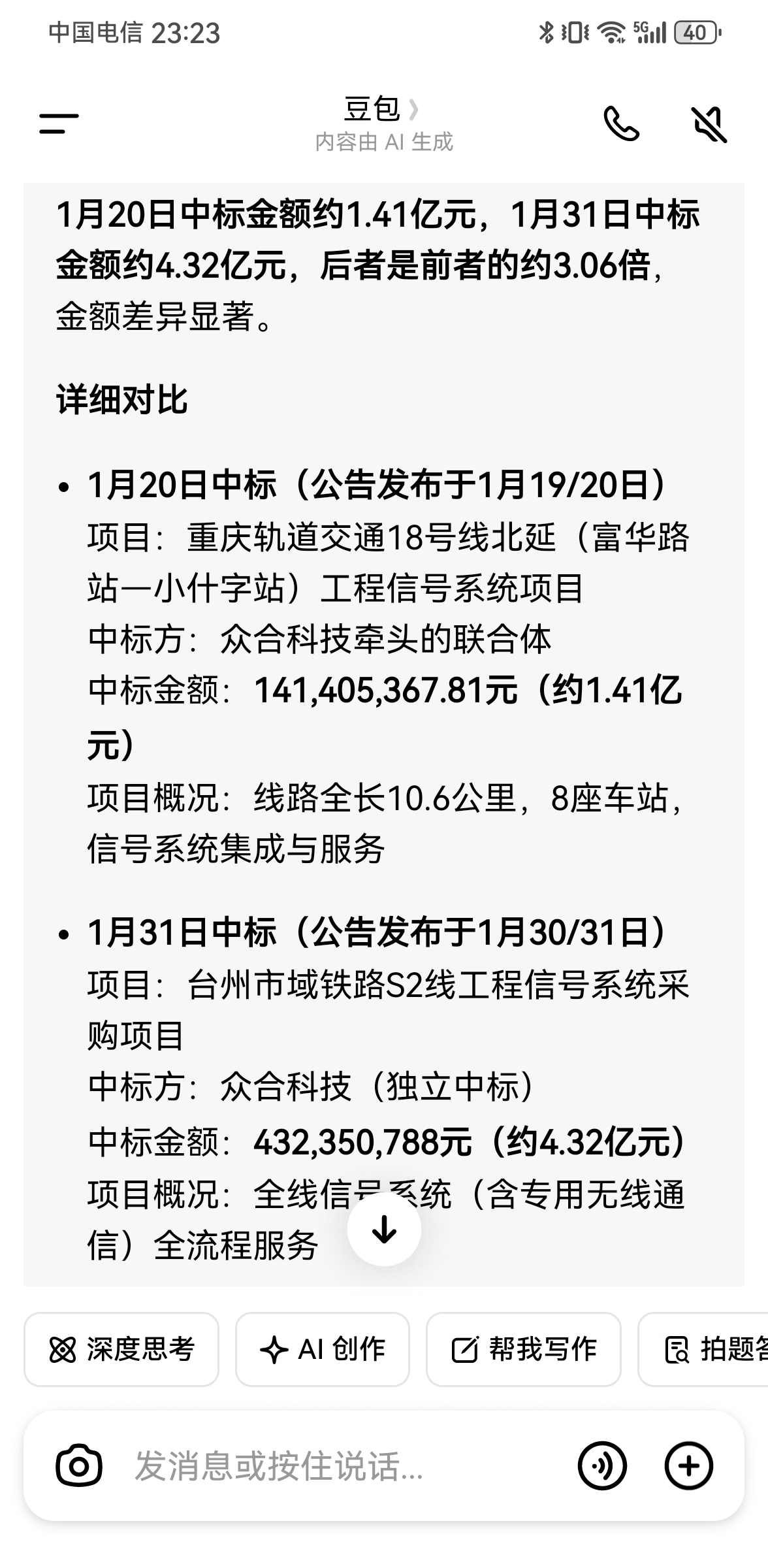 $众合科技(SZ000925)$ 1月20号中标和1月31日中标对比分析,#股市怎么看# 供参考!!!虽然有警示涵,虽然有客观业绩亏损,今天的中标应该可以对冲!!!