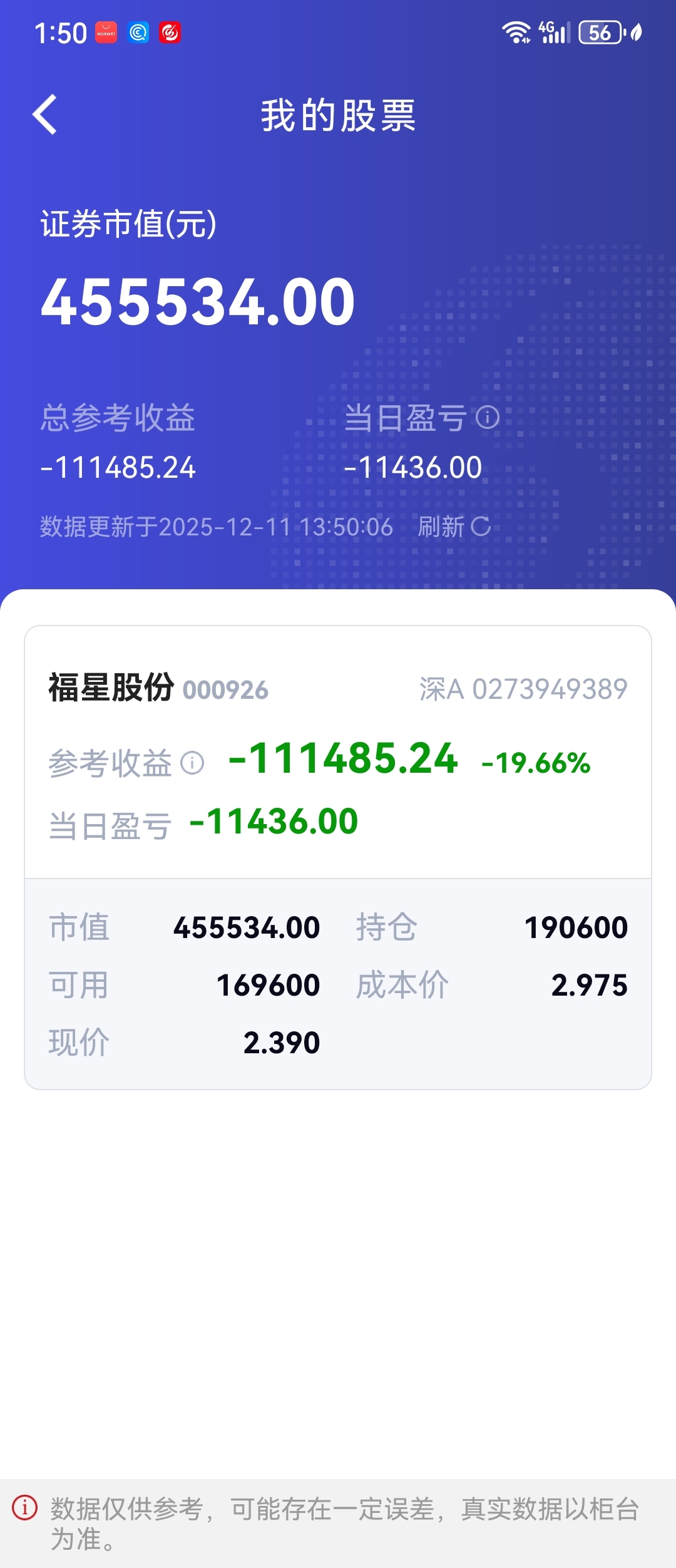 $福星股份(SZ000926)$ 我一年工资也挣不到11万呀!听朋友说要重组股票会翻倍,我并不贪的,预计55万进,挣五万块钱够孩子学费就行,结果成这样,不发公告不骗人股票三俩分三俩分的跌,一发公告酷驰酷驰的掉。