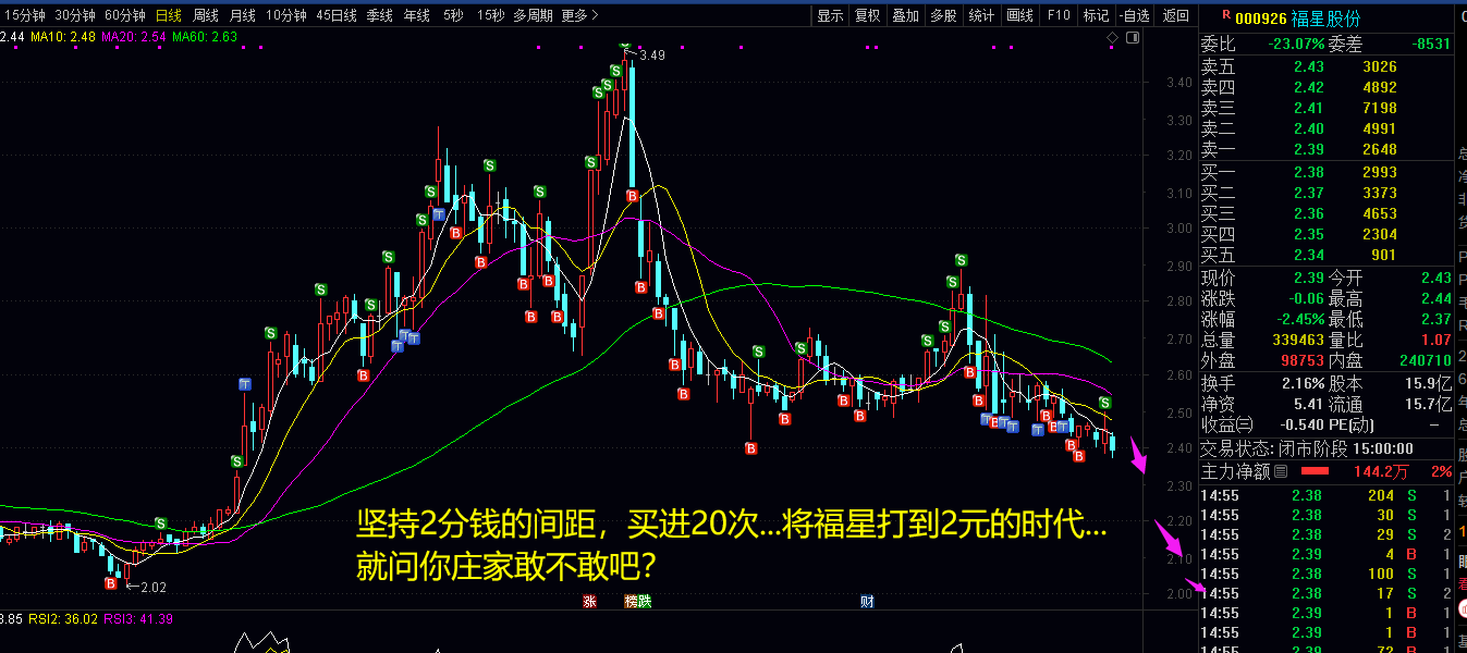 什么不听,就玩福星...跌2分钱就买进一笔1800股,坚持买十次,就跌0.2元...目标坚持买20次...1次需要资金:2.4*1800=4000多大洋...20次*0.4=9万大洋足够打到福星下跌4毛钱的了...