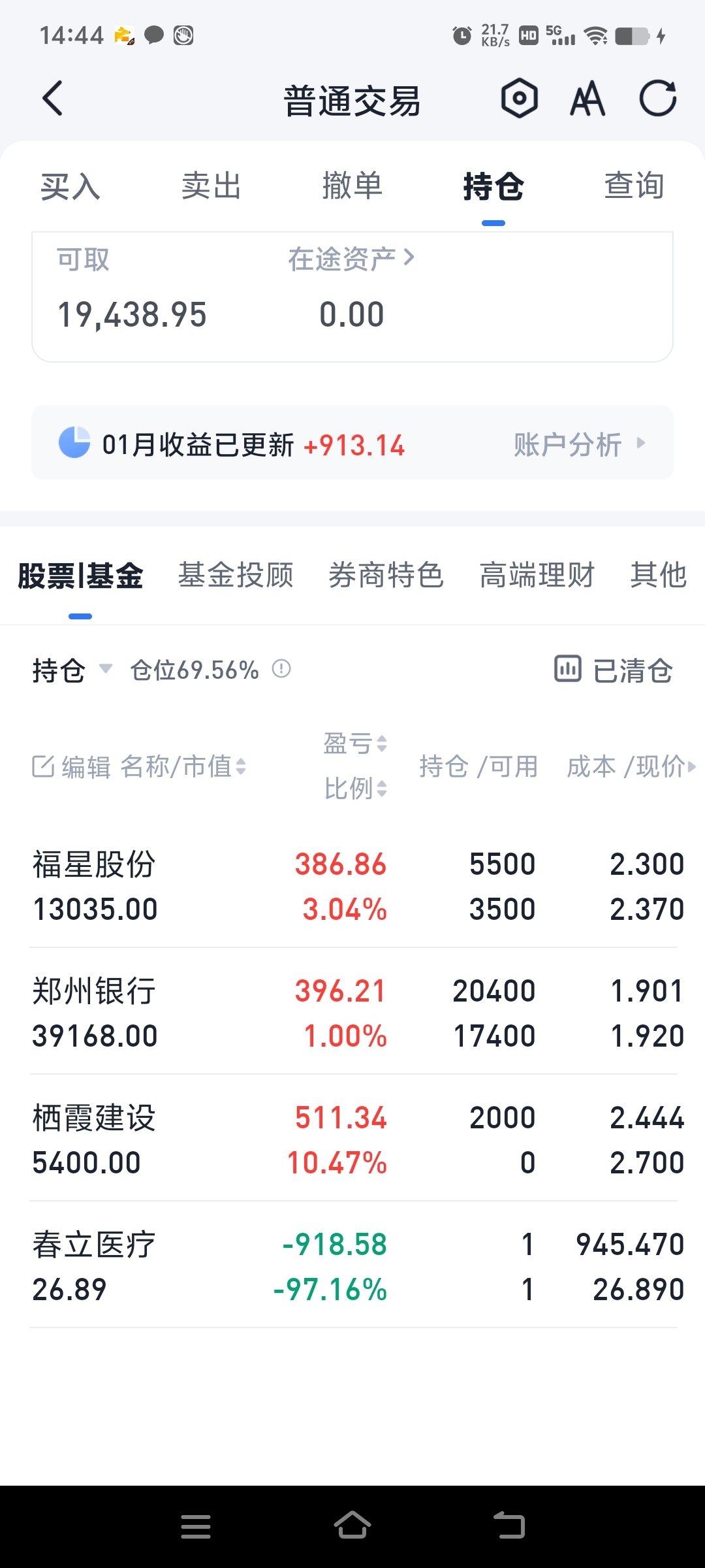2026年初福星持仓