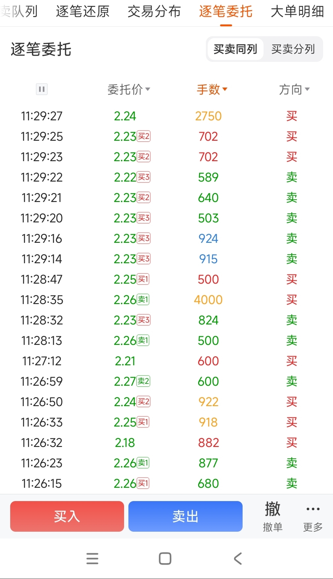 2.26以下买单少,主力拆小单挖坑