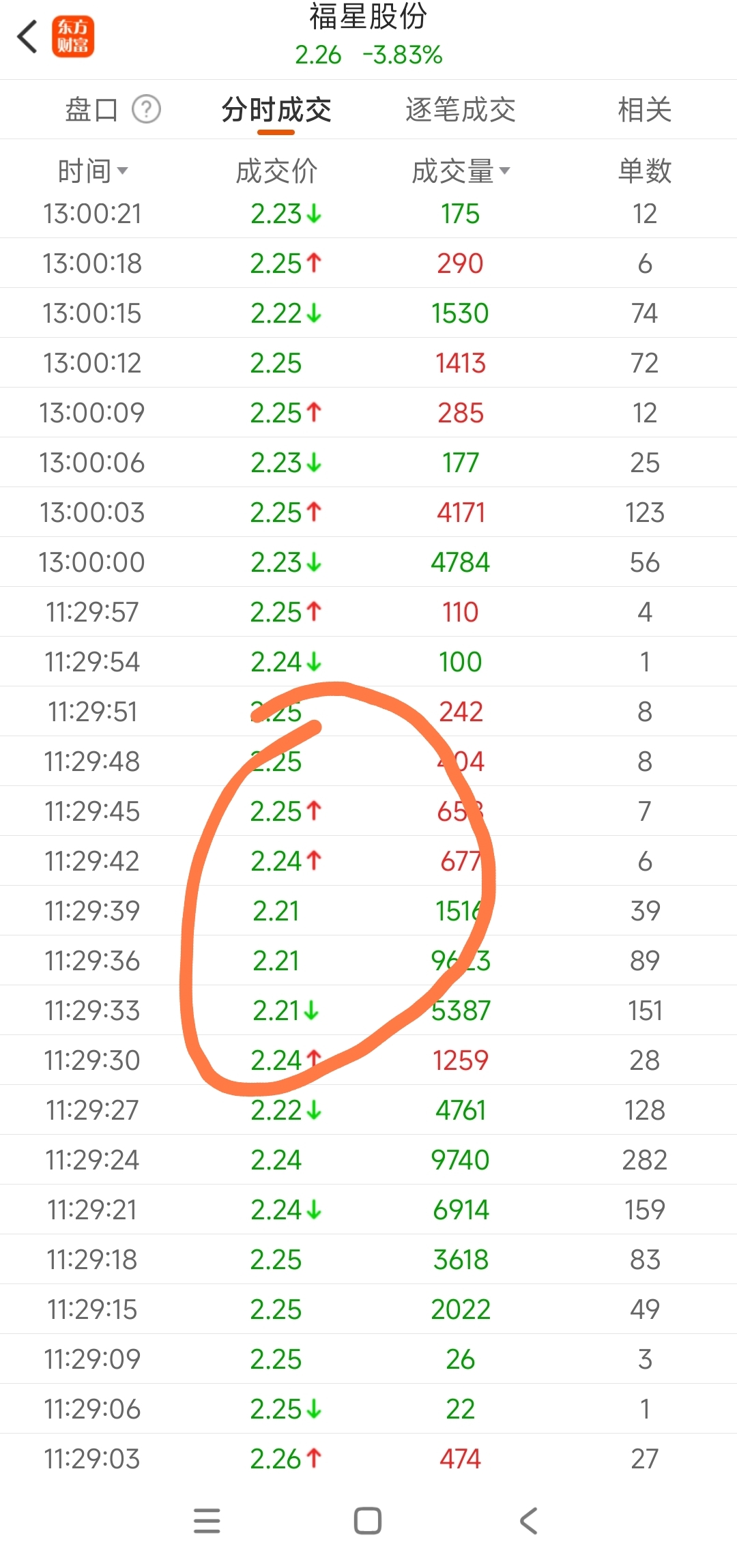 跌破2.22共12秒,且是利用午休前30秒偷袭的