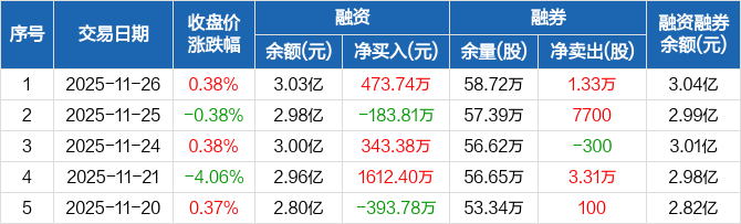 中国铁物:融资净买入473.74万元,融资余额3.03亿元(11-26)