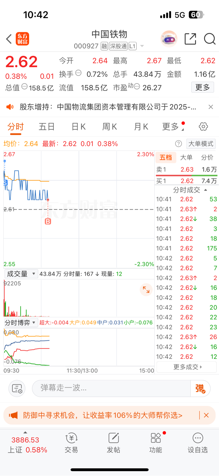 $中国铁物(SZ000927)$ 我进来了你可以涨停了