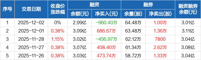 中国铁物:融资净偿还960.4万元,融资余额2.99亿元(12-02)