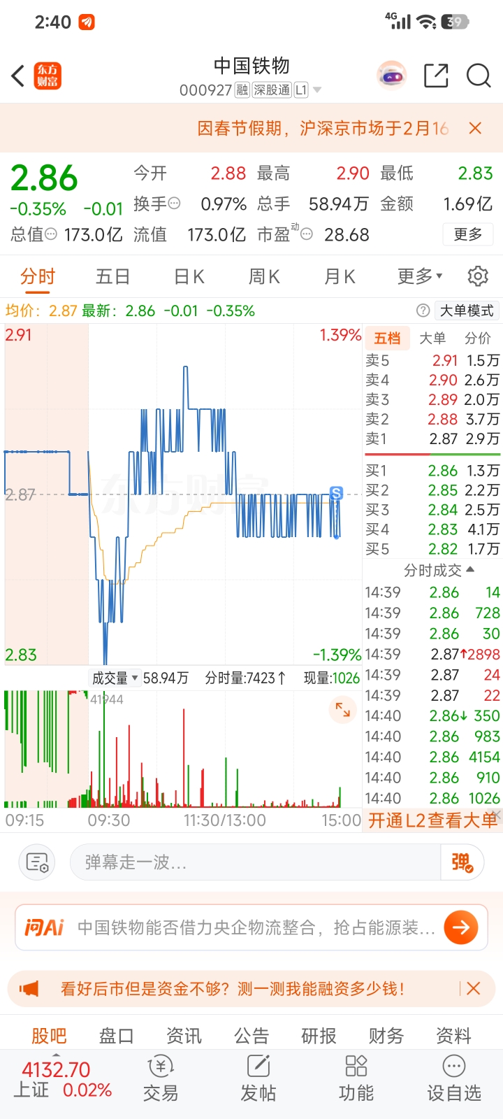 $中国铁物(SZ000927)$ 卖了,为了过年