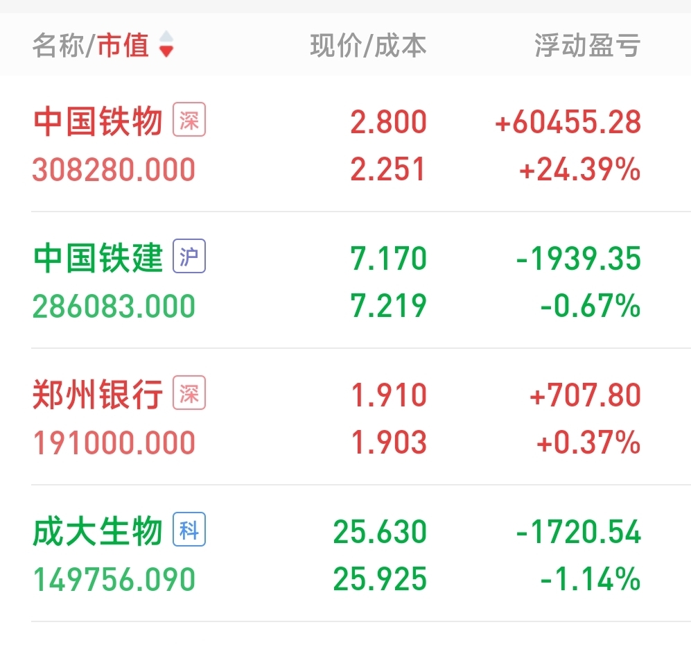 目前持有这些股的成本都不高,总盈利80万出头,算到这几只股票里成本几何???