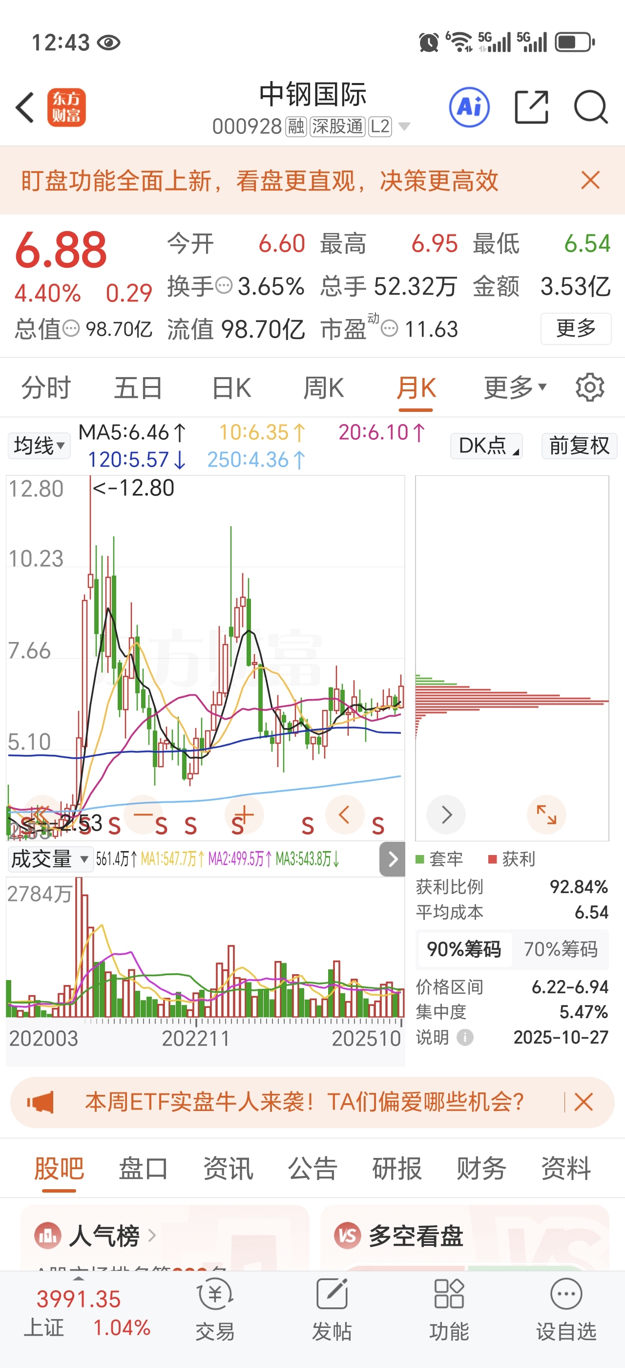 $中钢国际(SZ000928)$ 6.8套牢盘全部解放。单峰突破,上方一马平川。