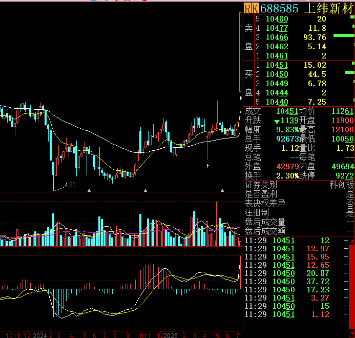 坚决看好上周的周K线。这是个股发动大行情前的信号弹。688585上纬新材2025