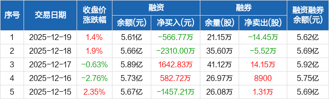 中钢国际:融资净偿还566.77万元,融资余额5.61亿元(12-19)